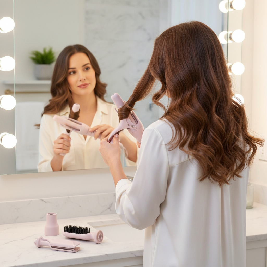 It’s super easy! Just place a section of hair near the barrel, press the direction button, and the Curlify Pro gently wraps the hair for you.